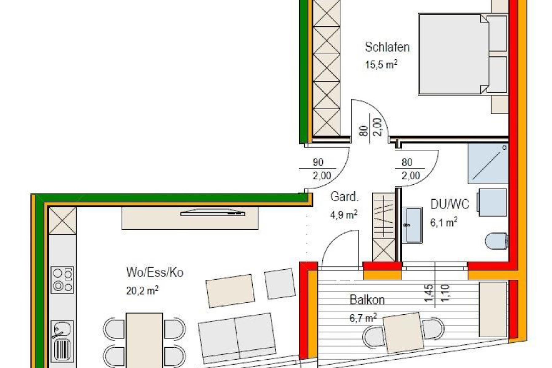 Diese 2-Zimmer-Wohnung befindet sich im 2. Obergeschoss der modernen Kleinwohnanlage in der Schmiedgasse 2 in Lustenau.