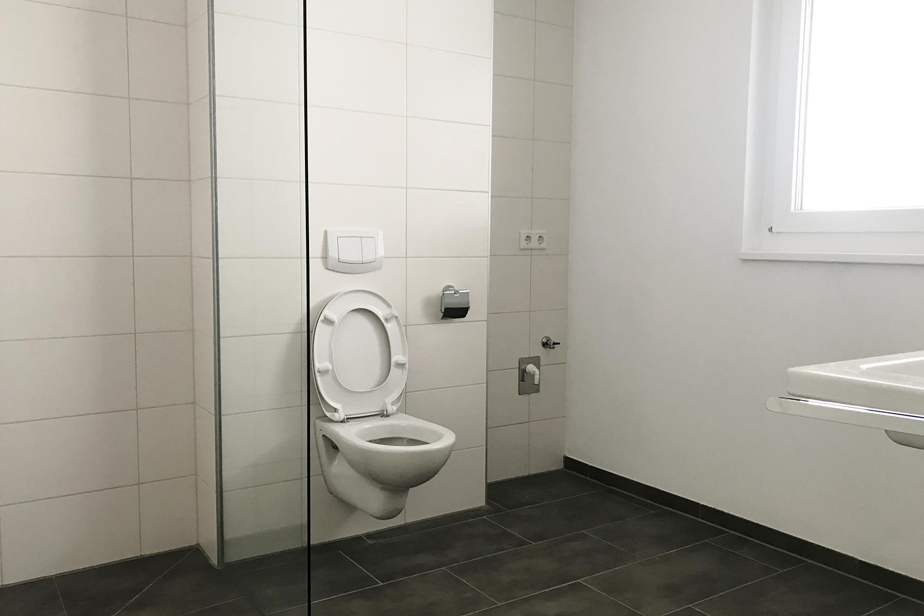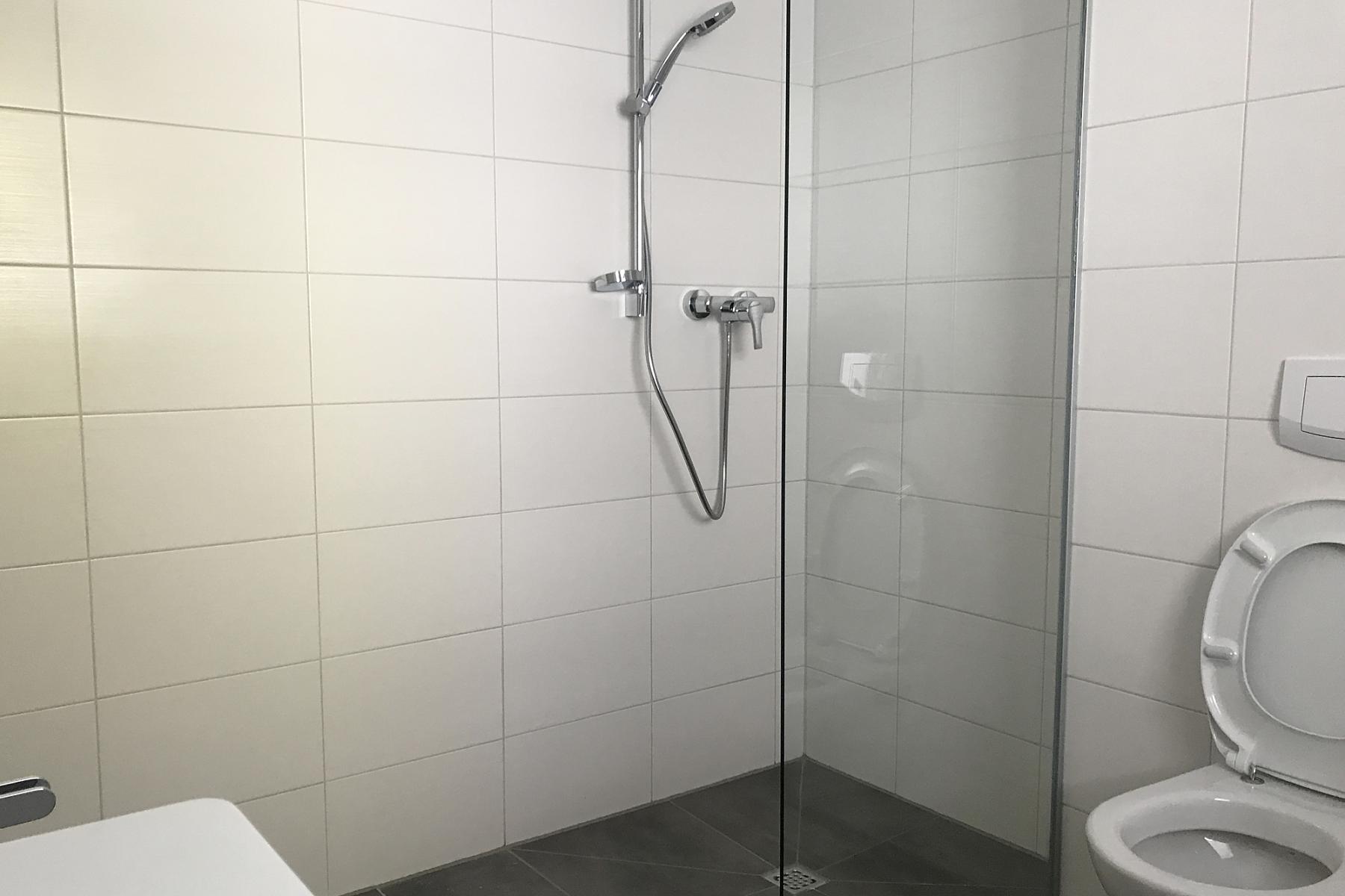 Dieses verfügt über jeglichen Komfort und wurde mit einer modernen Dusche, einem Waschbecken, einem WC sowie einem Waschmaschinenanschluss ausgestattet.