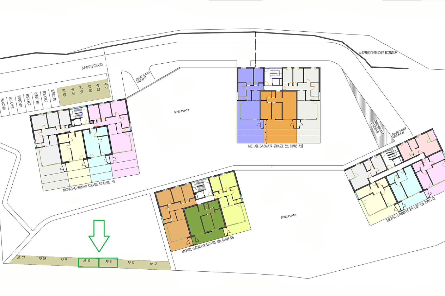 Der Abstellplatz befindet sich in einer im Jahr 2012 erbauten Wohnanlage in Bregenz. Der Autobahnanschluss Bregenz ist in ca. 10 Minuten mit dem Auto zu erreichen.