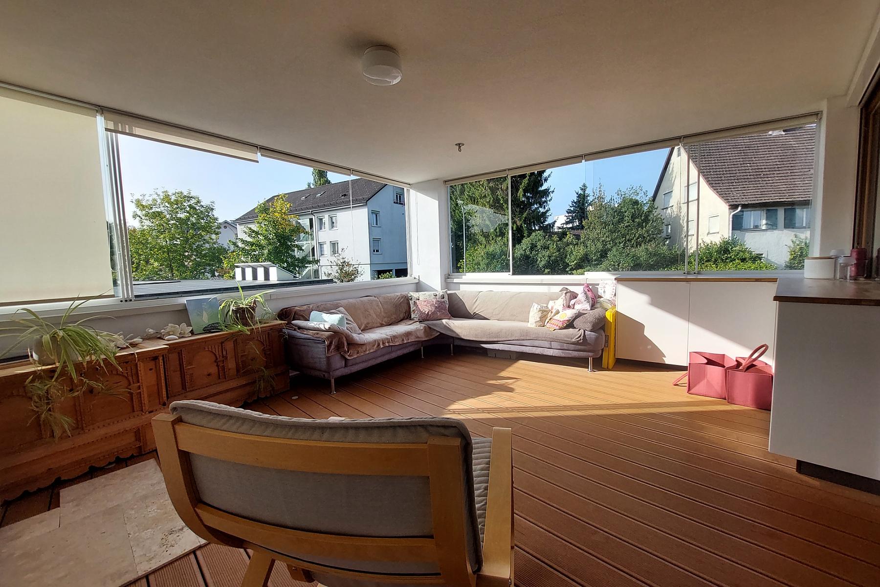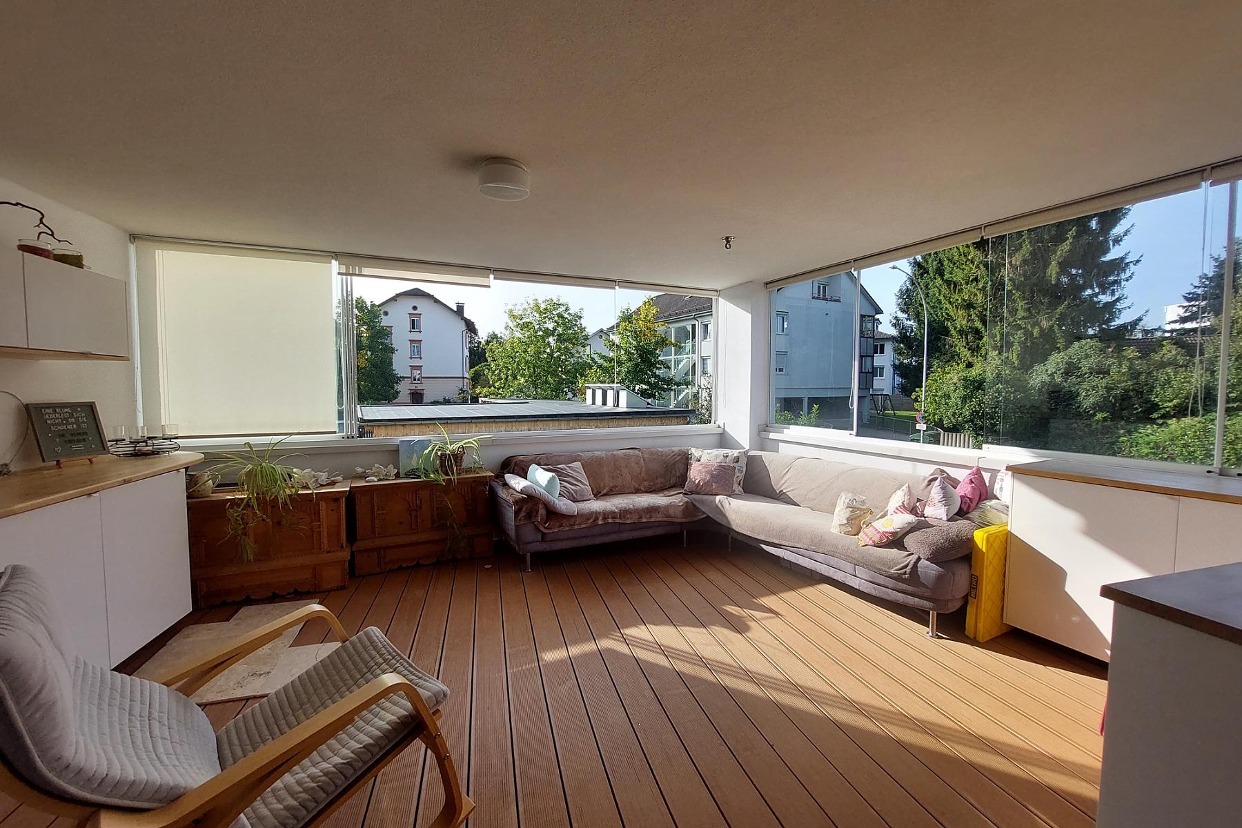 Die großzügige Sonnenterrasse ist vom Wohnbereich aus erreichbar und lädt bei jedem Wetter für gemütliche Stunden zum Verweilen ein.