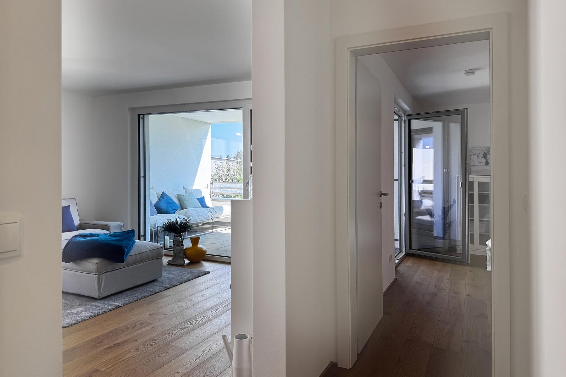 Die durchdacht geschnittenen Schlafzimmer, zwischen ca. 12 m² und ca. 14 m² können mit großen Kleiderschränken, Betten oder alternativ auch als Büro oder Ankleidezimmer eingerichtet werden.