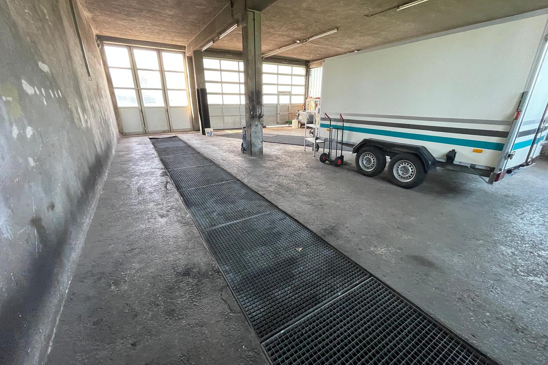 5 Großgaragen inkl. einer Montagegrube vorhanden. Die großzügige Zufahrt und der Vorplatzbereich mit Gesamtfläche auf 2.138 m² bietet Platz für das Parken von LKW´s, Transporter oder Busse. Im ersten Obergeschoss befindet sich eine Wohnfläche, welche jedoch seit über 10 Jahren nicht mehr bewohnt war. Die Restflächen im Obergeschoss sind nicht ausgebaut.