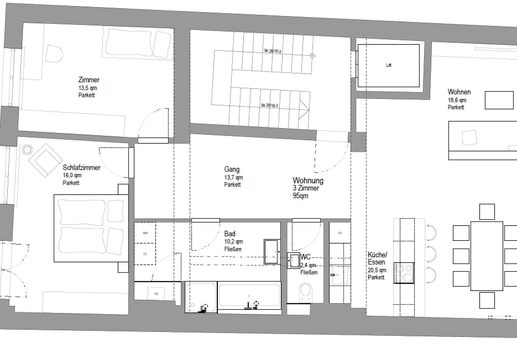 Diese großzügige 3-Zimmer-Wohnung mit rund 95 m² Wohnfläche überzeugt durch eine durchdachte Raumaufteilung und helle, freundliche Räume.