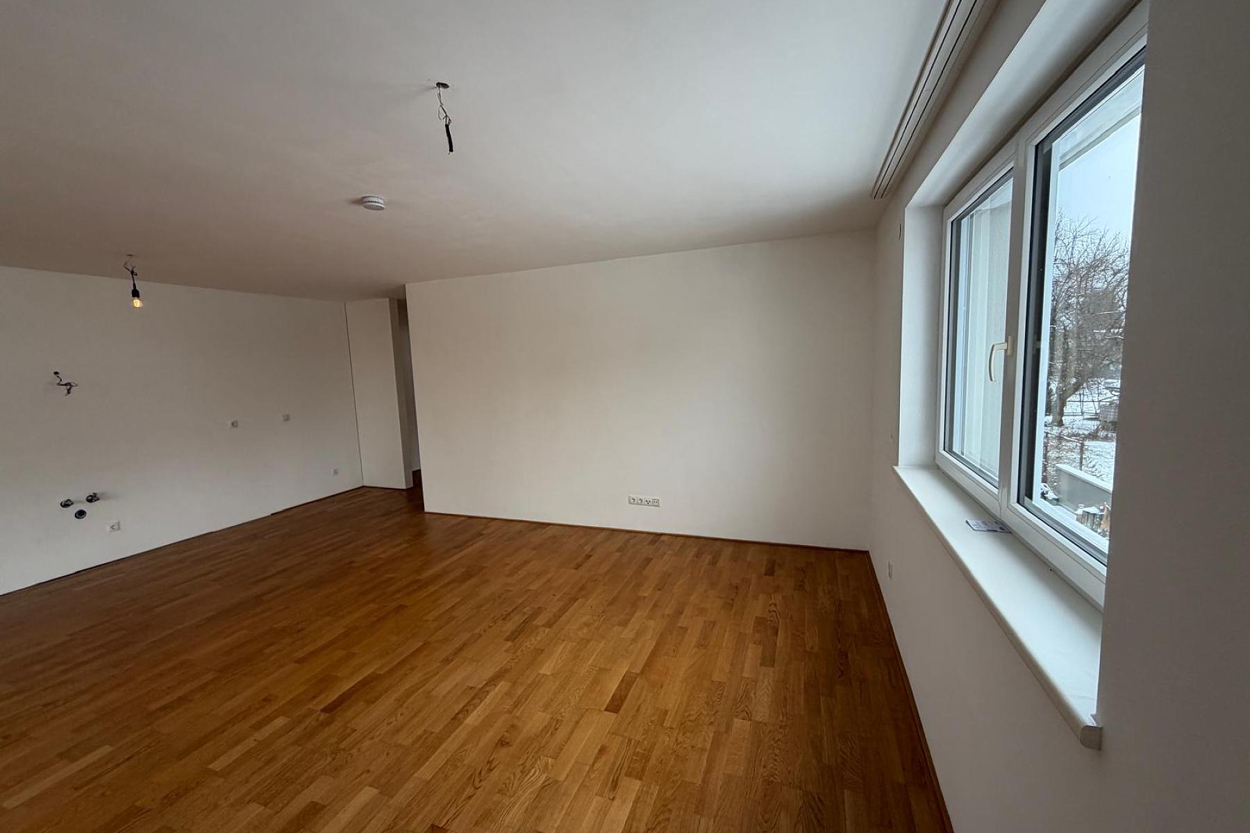 Am Ende der Wohnung ist der helle und gemütliche Koch-/Wohn-/Essbereich, welcher über eine voll ausgestattete Küche (Küche wird noch eingebaut) verfügt. Vom Wohnbereich aus gelangen Sie auf den ca. 18 m² großen Balkon.