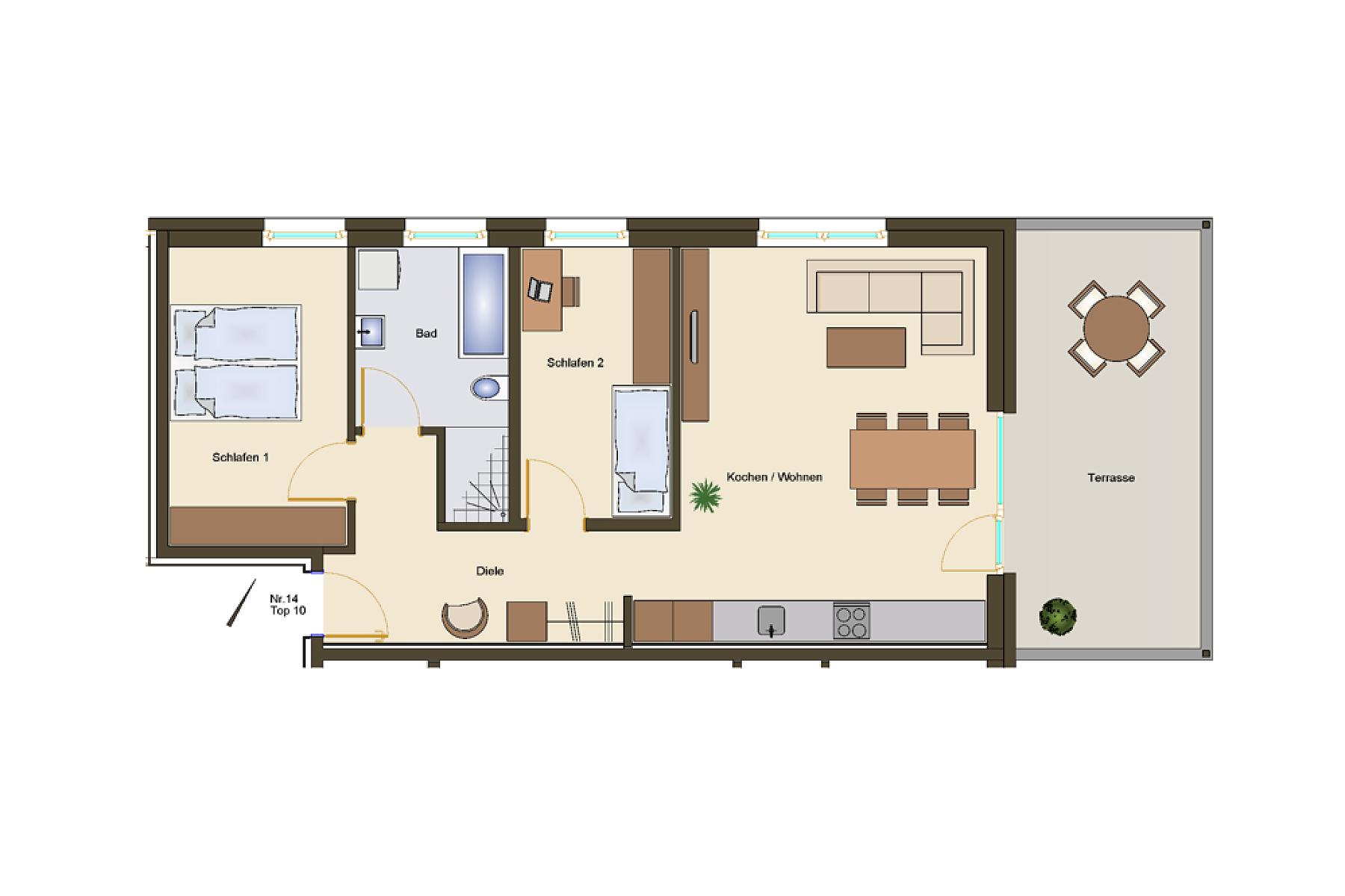 Diese sonnige 3-Zimmer-Wohnung befindet sich im 1. Obergeschoss der Wohnanlage Eichbrunnen 14 in Dornbirn.