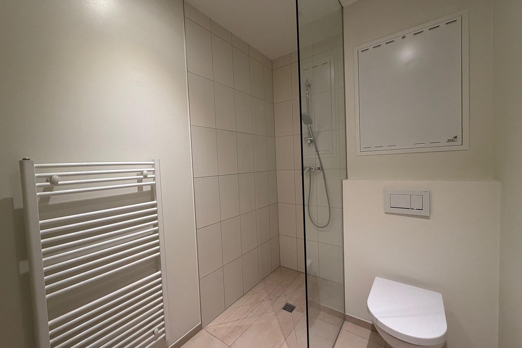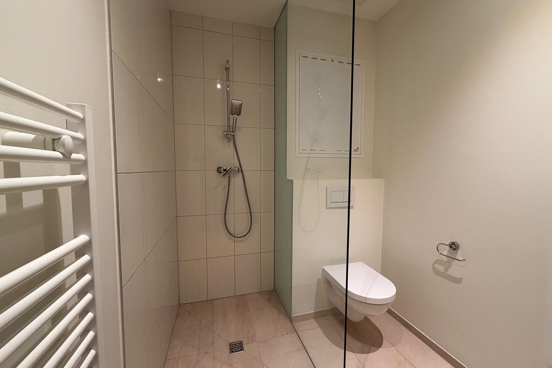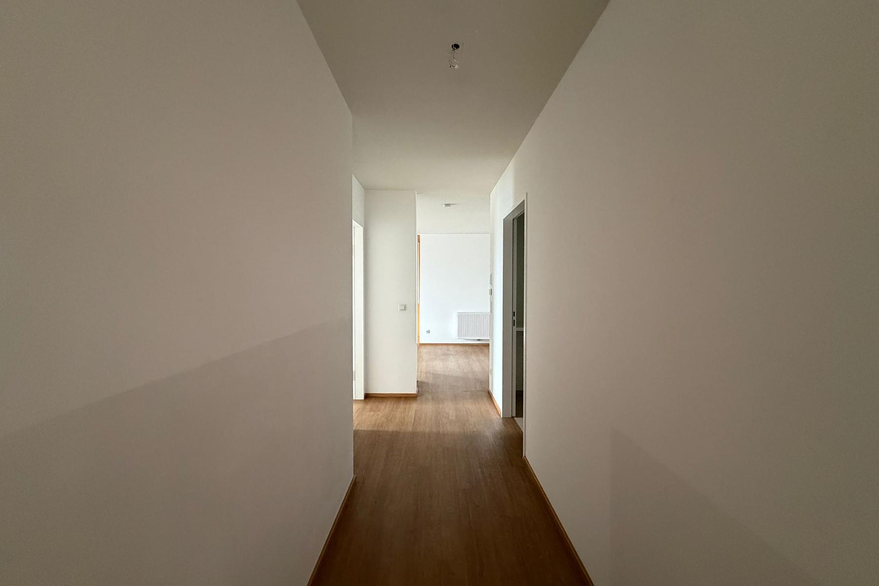 Eröffnet wird die Wohnung durch einen langgezogenen Flur. Gleich rechts gelangen Sie ins Badezimmer, wo Sie eine barrierefreie Dusche, ein WC sowie ein Waschtisch vorfinden.