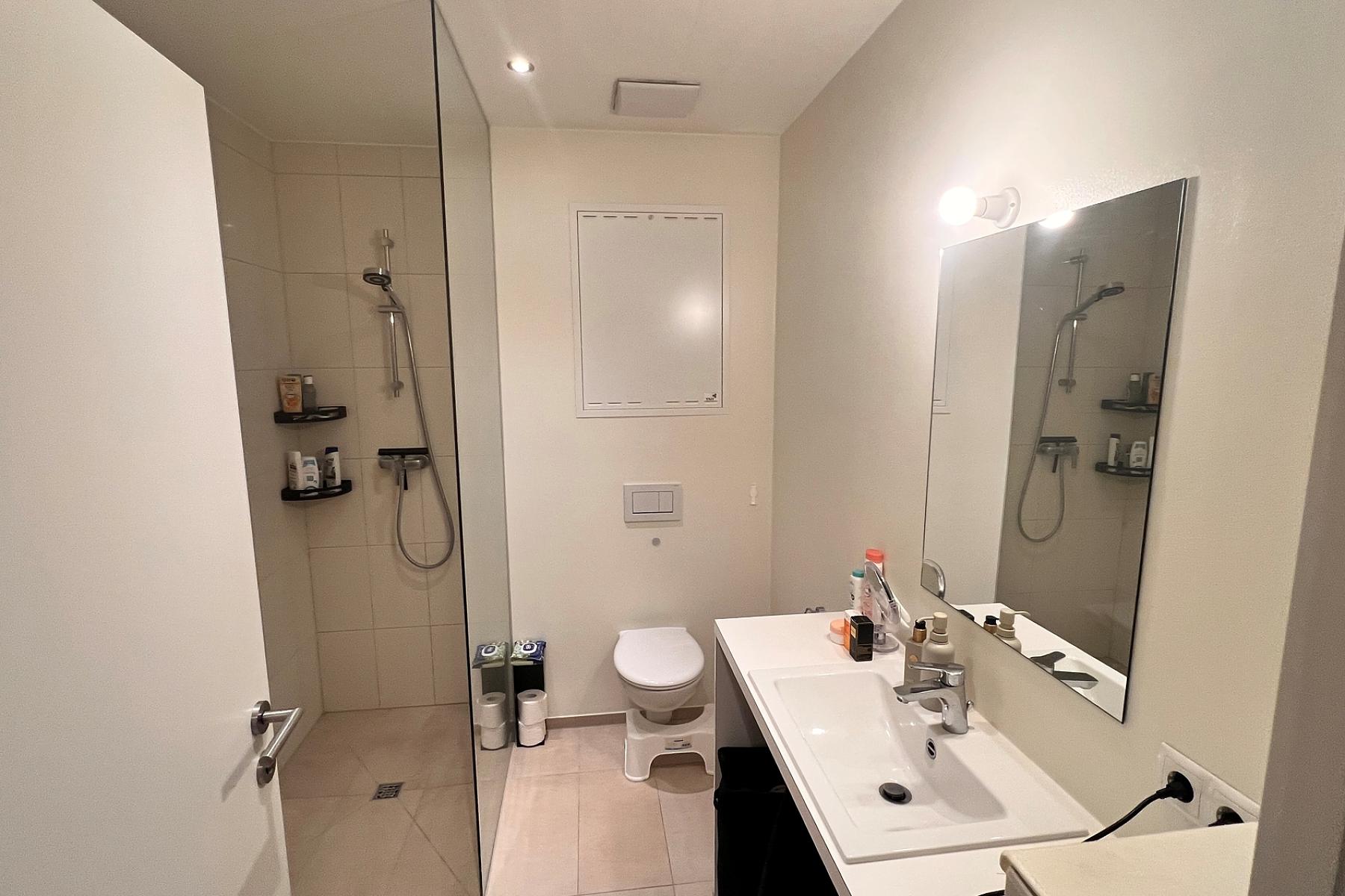 Rechterhand gelangen Sie ins Badezimmer, wo Sie eine barrierefreie Dusche, ein WC sowie ein Waschtisch vorfinden.